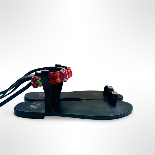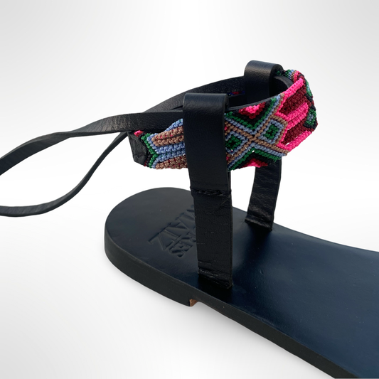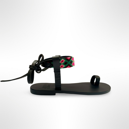 SANDALIA TZOTZIL - Negra | Rosa/Verde