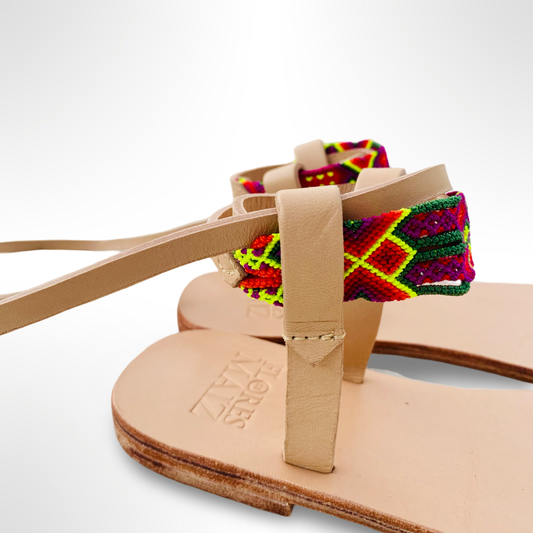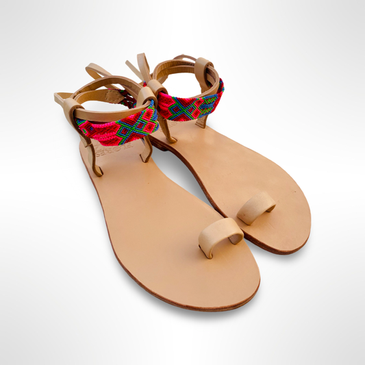SANDALIA TZOTZIL - Natural | Fucsia/Verde