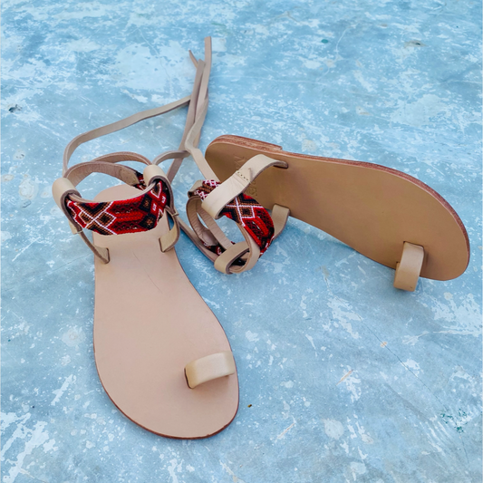 SANDALIA TZOTZIL - Natural | Rojo/Marrón