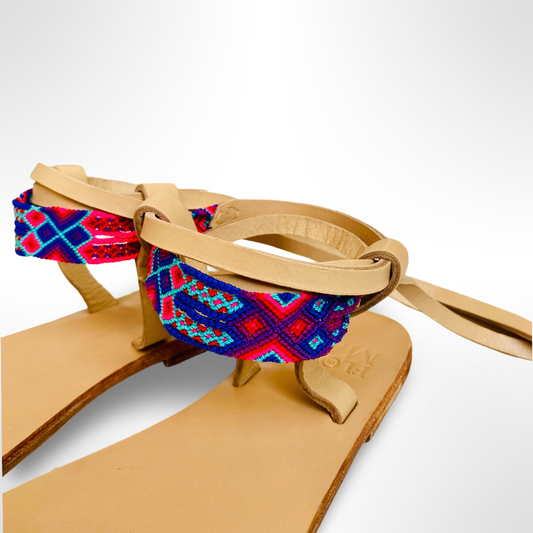 SANDALIA TZOTZIL - Natural | Azul/Coral