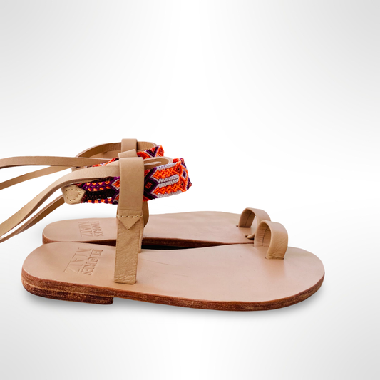 SANDALIA TZOTZIL - Natural | Naranja/Rojo